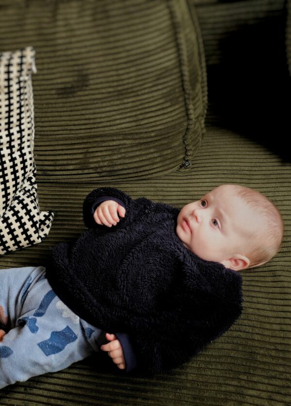 Craquez pour notre sweat enfant en moumoute bleu marine, une pièce confortable, stylée et éthique, parfaite pour habiller les petits avec douceur. Confectionné dans notre atelier à Nantes. Ce sweat en teddy tout doux sera parfait pour passer un hiver au chaud en mode cocooning.